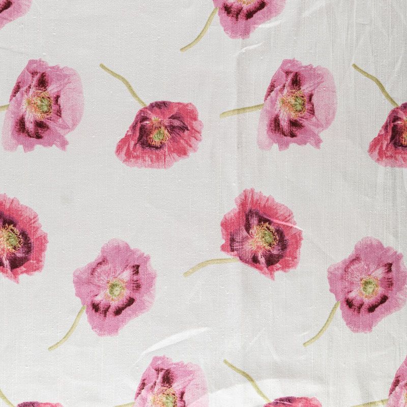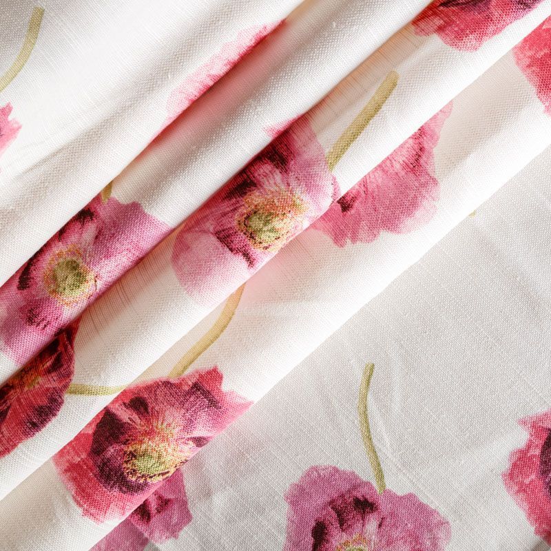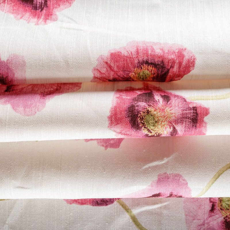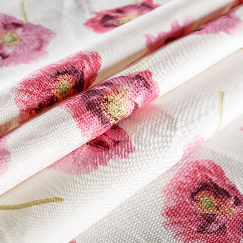 Хлопковая портьерная ткань английского производителя. На молочной текстурированной основе наснесен принт в виде полевых маков в розовой гамме. Ткань средней плотности, прекрасно держит форму, драпируется в устойчивые складки. Подойдет для классических портьер, римских штор, покрывал, подушек, скатертей, салфеток и других элементов текстильного интерьера как в самостоятельном исполнении, так и качестве компаньона к однотонным варинтам.