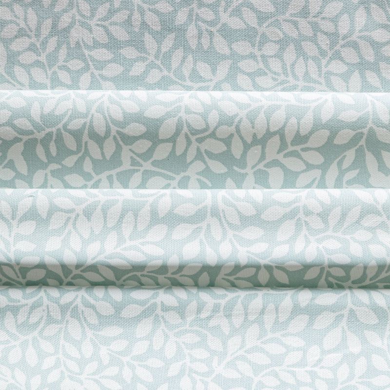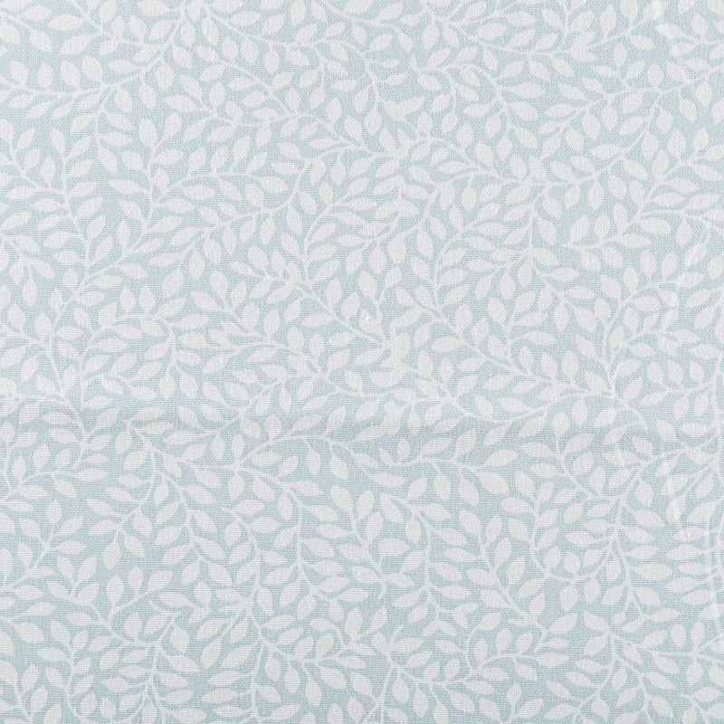 Хлопковая портьерная ткань со стилизованным растительным принтом в молочном оттенке на светло-бирюзовом фоне. Ткань средней плотности, без блеска, хорошо драпируется, имеет полонтяное переплетение. Можно использовать для пошива портьер, римской шторы, салфеток, столового белья, подушек, покрывал и других предметов текстильного интерьера.
