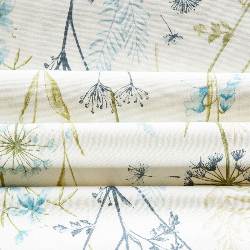 Натуральная хлопковая портьерная ткань с принтом полевых растений в пастельных нежных оттенках. Ткань средней плотности, без блеска, хорошо драпируется, имеет полонтяное переплетение. Прекрасно подойдет для оформления детской, кухни, столовой или дачного интерьера. Можно использовать для пошива портьер, римской шторы, салфеток, столового белья, подушек, покрывал и других предсетов текстильного интерьера.