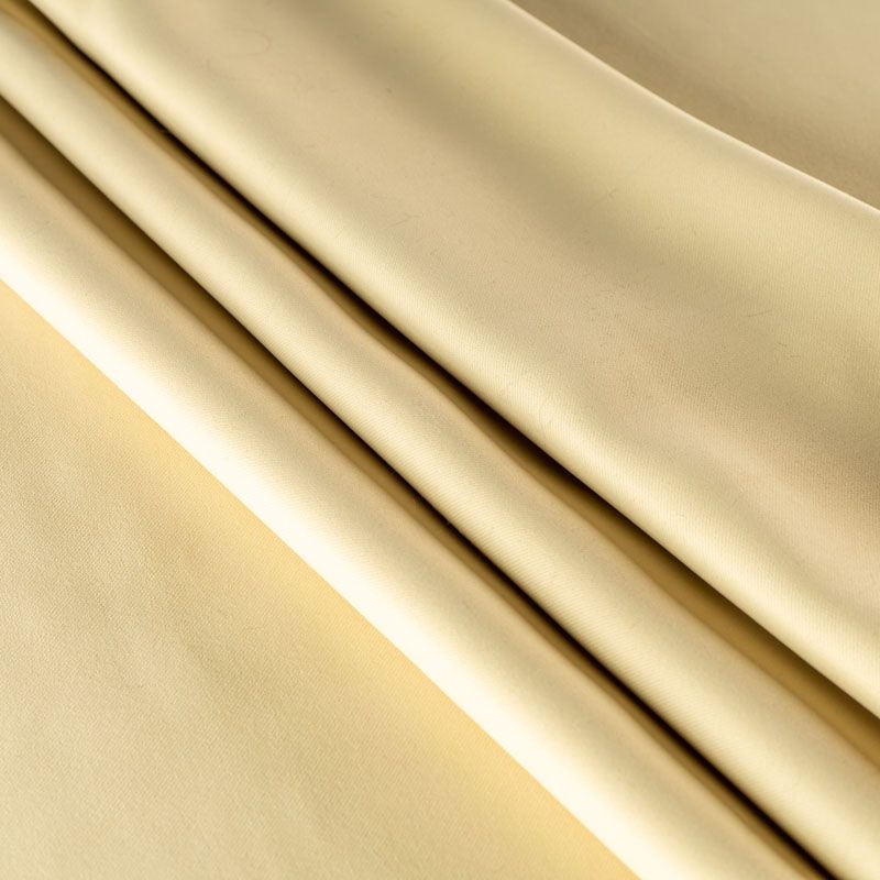 Двухстороняя плотная ткань. Обе стороны гладкие, имеют сатиновый легкий глянец. Ткань хорошо драпируется, укладываясь в крупные ниспадающие пластичные складки и позволяет использовать любые виды крепления для штор – люверсы, ленту, кольца.  Блокирует от 30 до 70 % проникновение света в помещении, не склонна к выгоранию и деформации. Удачно впишется в такие интерьеры, как эко, лофт, модерн в качестве портьер и других элементов текстильного оформления.