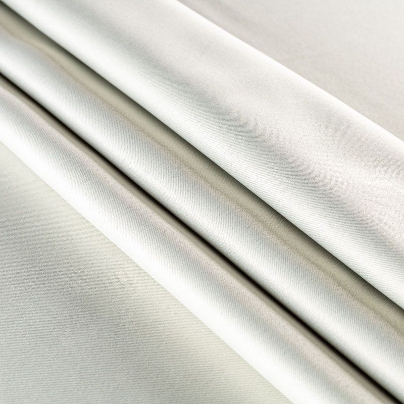 Двухстороняя плотная ткань. Обе стороны гладкие, имеют сатиновый легкий глянец. Ткань хорошо драпируется, укладываясь в крупные ниспадающие пластичные складки и позволяет использовать любые виды крепления для штор – люверсы, ленту, кольца.  Блокирует от 50 до 90 % проникновение света в помещении, не склонна к выгоранию и деформации. Удачно впишется в такие интерьеры, как эко, лофт, модерн в качестве портьер и других элементов текстильного оформления.