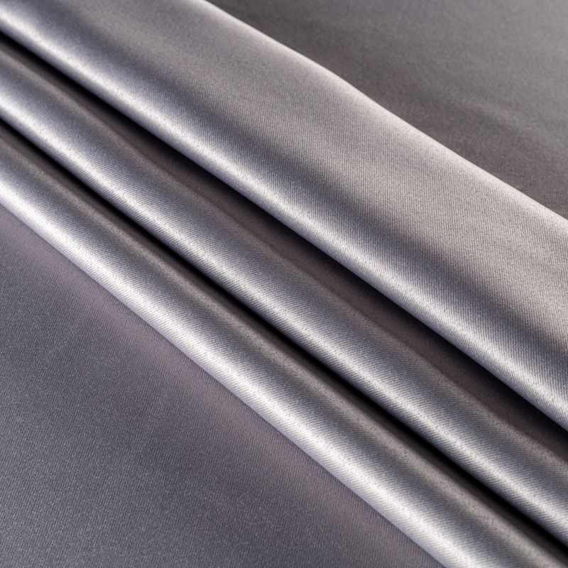 Двухстороняя плотная ткань. Обе стороны гладкие, имеют сатиновый легкий глянец. Ткань хорошо драпируется, укладываясь в крупные ниспадающие пластичные складки и позволяет использовать любые виды крепления для штор – люверсы, ленту, кольца.  Блокирует от 50 до 90 % проникновение света в помещении, не склонна к выгоранию и деформации. Удачно впишется в такие интерьеры, как эко, лофт, модерн в качестве портьер и других элементов текстильного оформления.