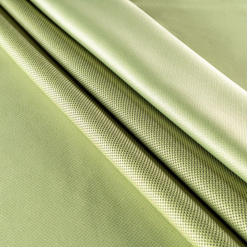 Двухстороняя плотная ткань.Одна сторона - матовая с плетением рогожка,а другая с сатиновым легким глянцем. Хорошо драпируется, укладываясь в крупные ниспадающие пластичные складки и позволяет использовать любые виды крепления для штор – люверсы, ленту, кольца.  Блокирует до 50 % проникновение света в помещении, не склонна к выгоранию и деформации. Удачно впишется в такие интерьеры, как эко, лофт, модерн в качестве портьер и других элементов текстильного оформления.