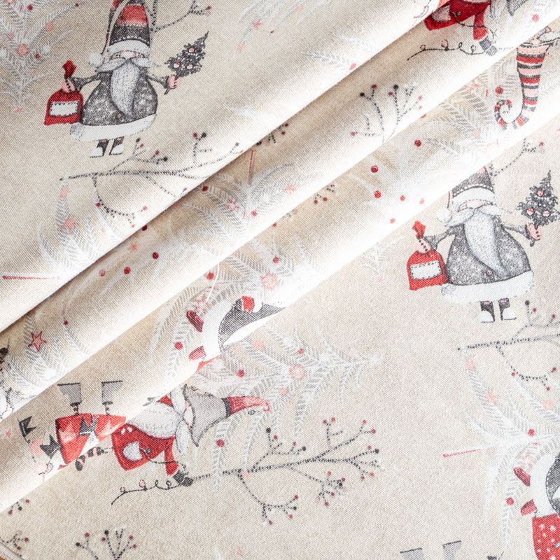Декоративный смесовый хлопок с новогодне-рождественским принтом от испанского производителя Visatex. Ткань средней плотности, приятная и гладкая на ощупь. Интересный вариант для пошива штор, декоративных подушек и покрывал, изготовления текстильных элементов в кухнях-столовых, гостинных, спальнях и даже детских.