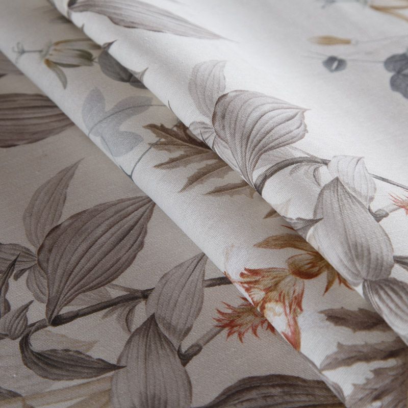 Декоративная портьерная ткань со смесовым составом и флористическим трендовым принтом от испанского производителя Visatex. Ткань средней плотности, приятная на ощупь, слегка фактурная из-за натуральных волокон. Интересный вариант для пошива штор, декоративных подушек и покрывал, изготовления текстильных элементов в кухнях-столовых, гостинных, спальнях и даже детских.