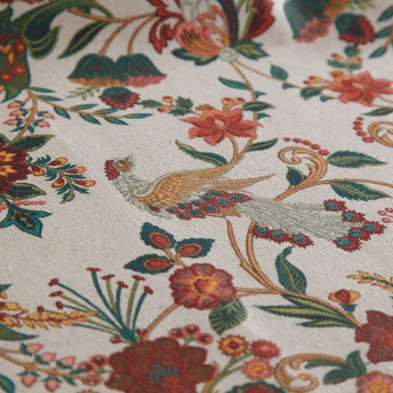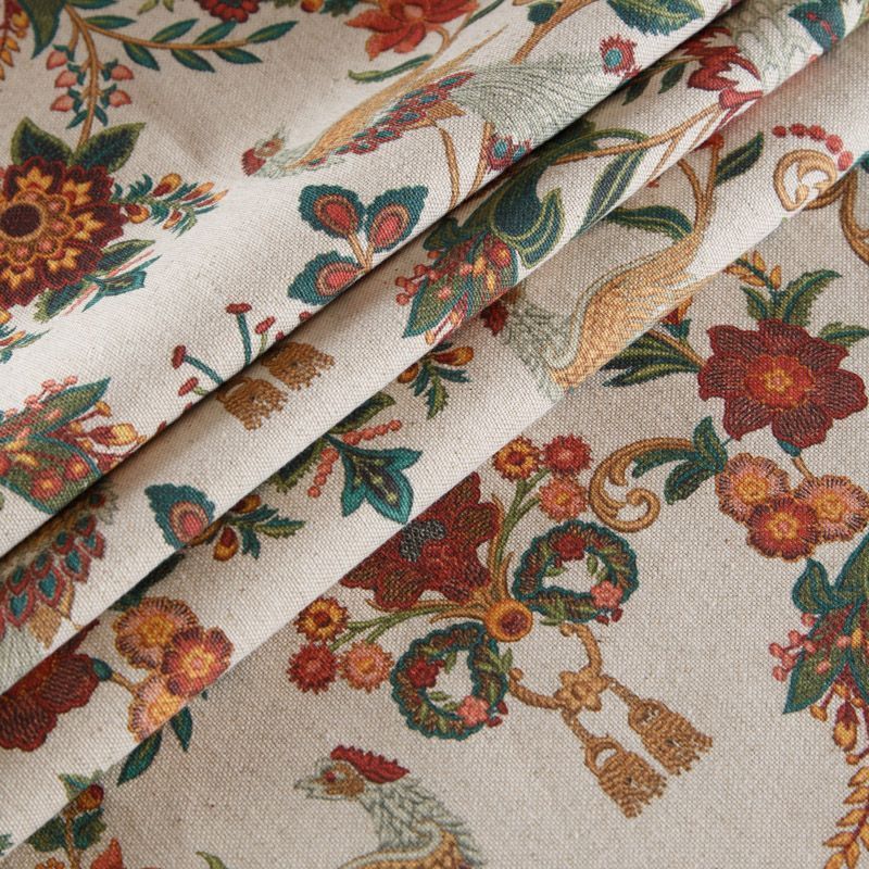 Декоративная портьерная ткань с шикарным натуральным составом и фантазийным принтом от испанского производителя Visatex. Ткань средней плотности, приятная на ощупь, слегка фактурная из-за натуральных вовлокон. Интересный вариант для пошива штор, декоративных подушек и покрывал, изготовления текстильных элементов в кухнях-столовых, гостинных, спальнях и даже детских.