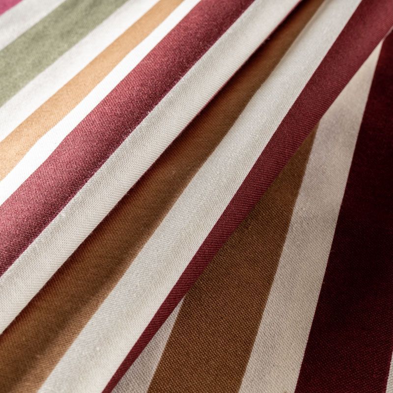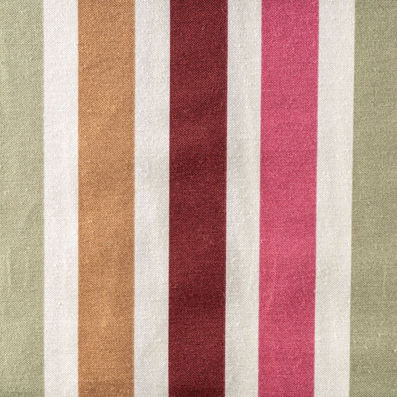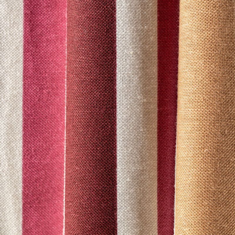 Испанская матовая фактурная портьерная ткань в полоску, которая расположена вдоль кромки. Представлена в яркой цветовой палитре. Ткань очень приятная на ощупь за счёт хлопка в составе и очень универсальная, прекрасно впишется в самые разные стилевые направления (прованс, кантри). Можно использовать для пошива портьер, римской шторы, салфеток, столового белья, подушек, покрывал, обивки мебели.