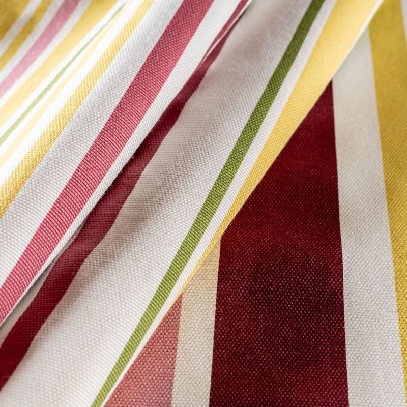 Испанская матовая фактурная портьерная ткань в полоску, которая расположена вдоль кромки. Представлена в яркой цветовой палитре. Ткань очень приятная на ощупь за счёт хлопка в составе и очень универсальная, прекрасно впишется в самые разные стилевые направления (прованс, кантри). Можно использовать для пошива портьер, римской шторы, салфеток, столового белья, подушек, покрывал, обивки мебели.