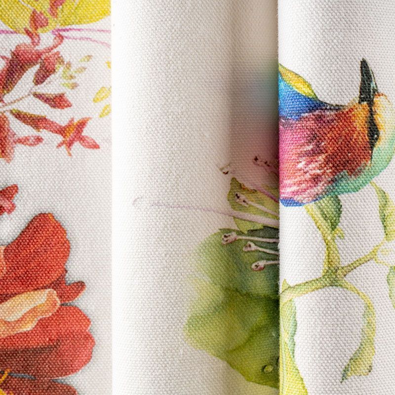 Портьерная ткань с ярким и сочным принтом. Ткань очень приятная на ощупь за счёт хлопка в составе с благородным блеском. Не даёт усадку, благодаря специальной пропитке. Очень универсальная, прекрасно впишется в самые разные стилевые направления (прованс, кантри). Можно использовать для пошива портьер, римской шторы, салфеток, столового белья, подушек, покрывал, обивки мебели.
