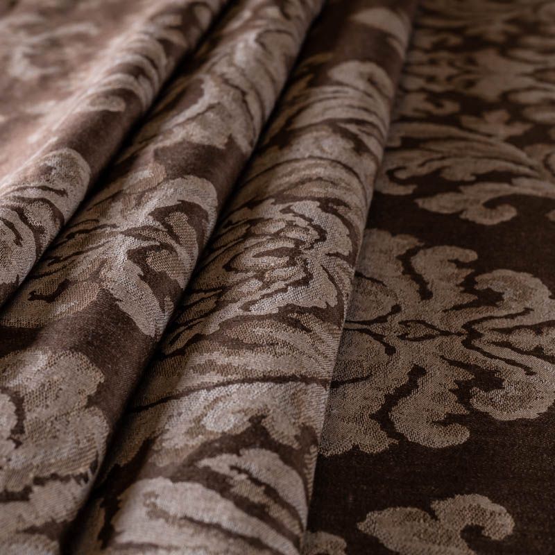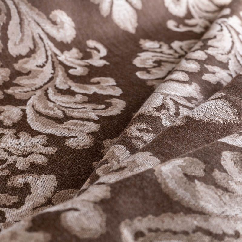 Натуральная льняная жаккардовая портьера с классическим растительным орнаментом в шоколадной цветовой гамме. Ткань плотная, тяжелая, может драпироваться в большие складки. Лен подойдет для плотных штор, покрывал, подушек, скатертей и салфеток, обивки мебели, Прекрасно впишется в интерьер как в совеременном стиле, так и в стиле прованс.