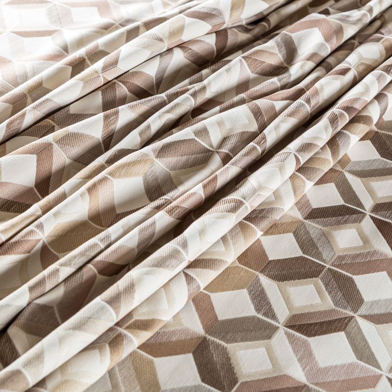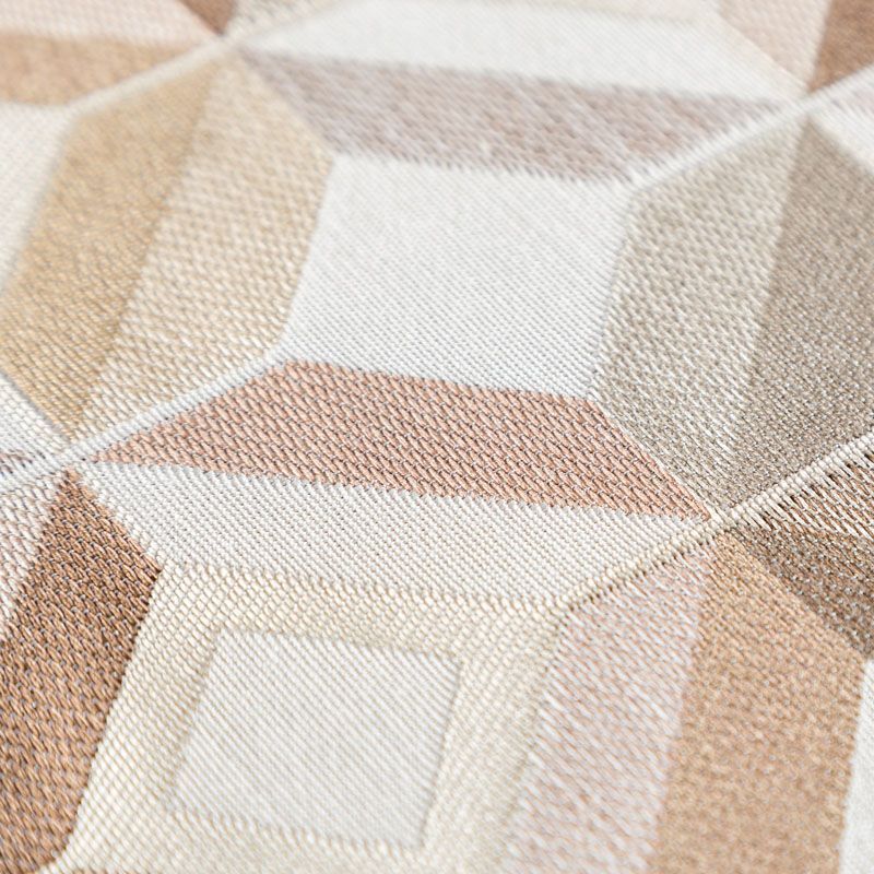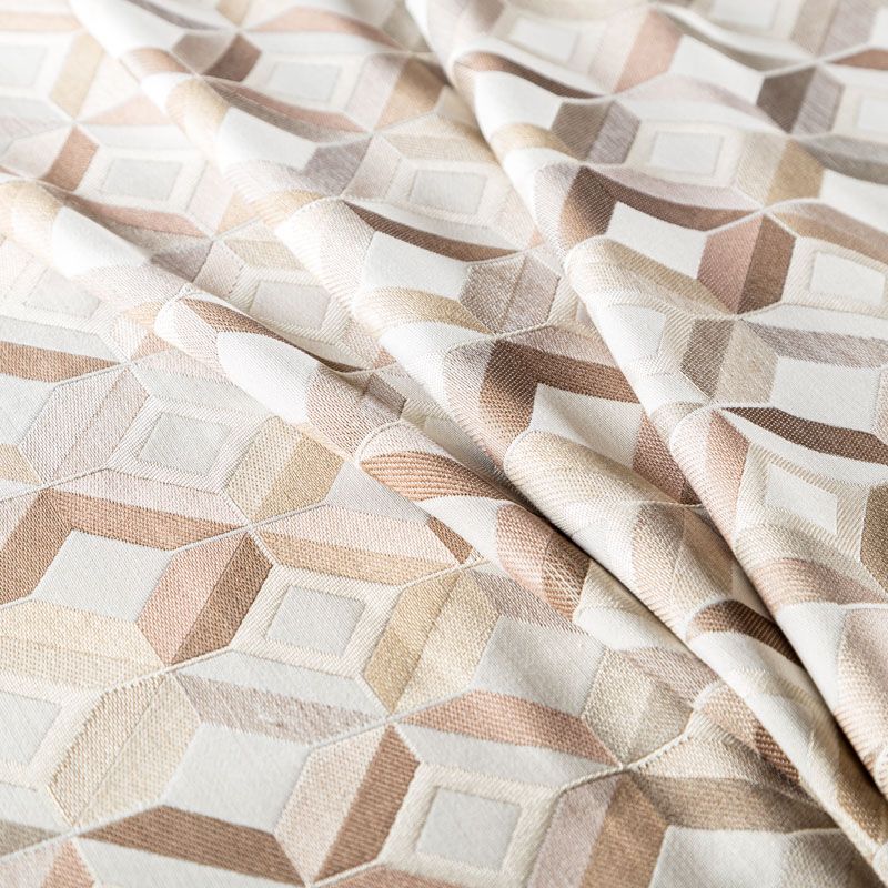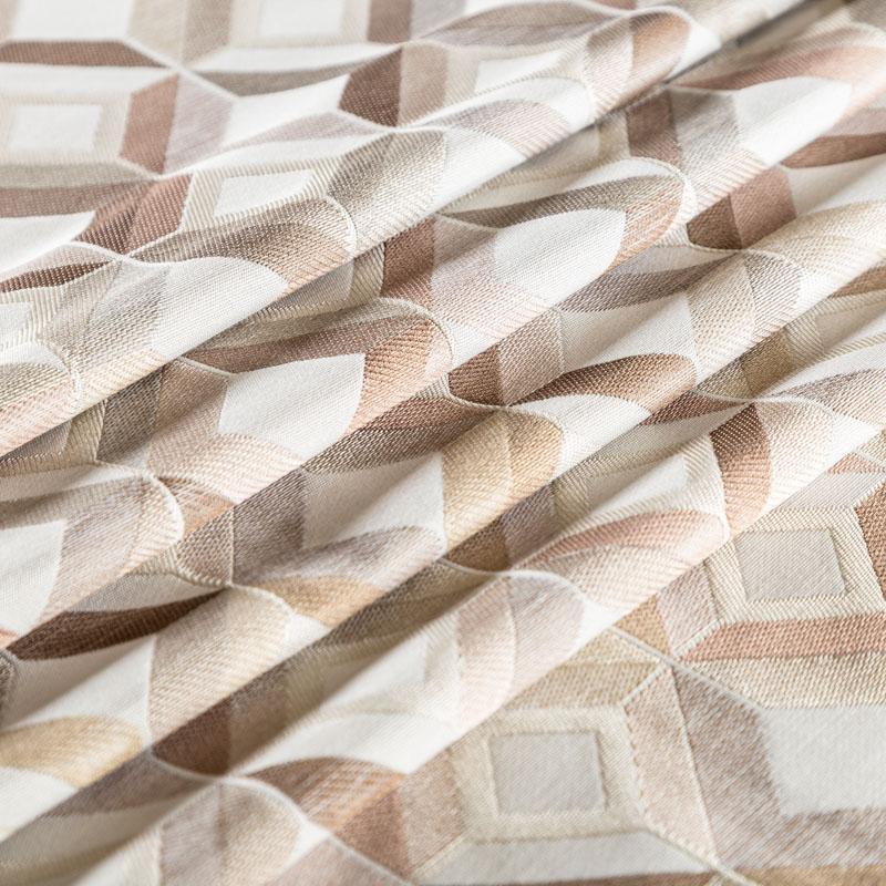 Стильная жаккардовая ткань натурального бежевого оттенка с великолепным современным геометрическим дизайном из коллекции Отто известного бренда Fryett's. Ткань высокой плотности, имеет фактурную матовую поверхность, прекрасно держит форму. Ткани этой коллекции прекрасно впишутся в традиционный и современный интерьер в качестве римской или классической шторы, подушек, обивки мебели.