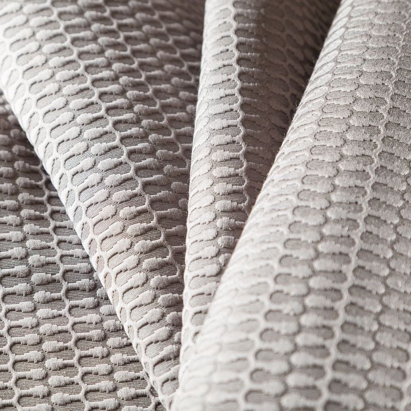 Стильная ткань серо-бежевого оттенка с объемным жаккардовым абстрактным дизайном из коллекции Нова известного бренда Fryett's. Ткань высокой плотности, имеет фактурную поверхность и сдержанный сатиновый блеск, прекрасно держит форму. Ткани этой коллекции прекрасно впишутся в традиционный и современный интерьер в качестве римской или классической шторы, покрывала, подушек, чехдлов для мебели.