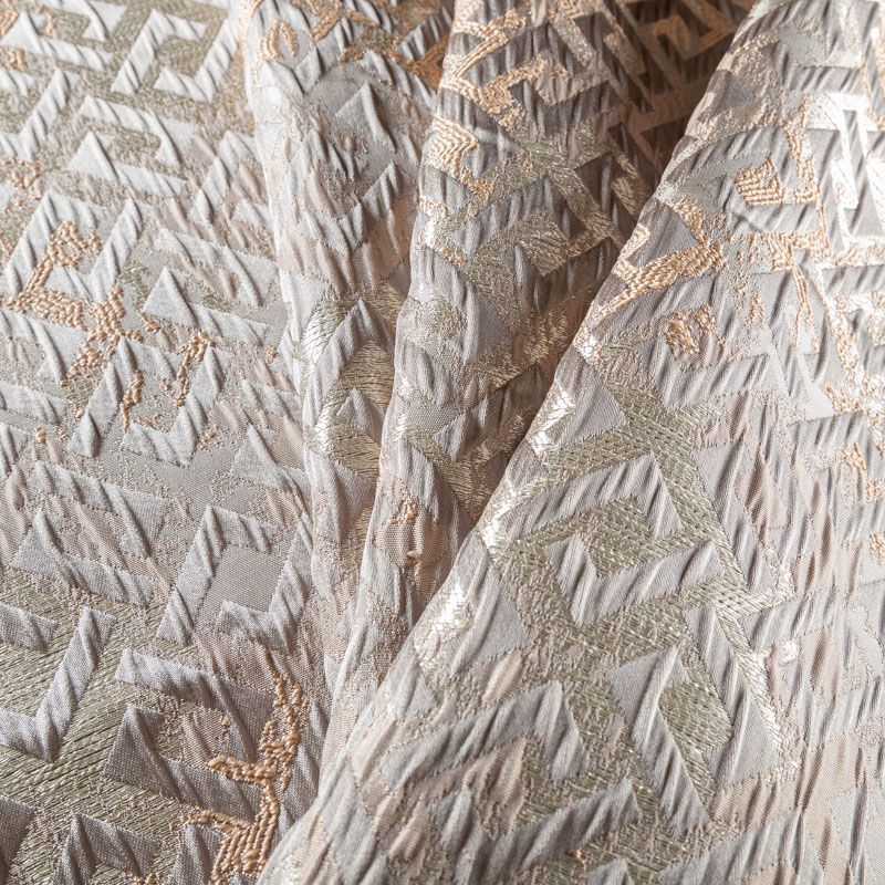 Плотная портьерная жаккардовая ткань с эффектом 3D с интересным геометрическим узором. Стильные и строгие шторы, подушки, покрывала из этой ткани прекрасно впишутся в классический стиль, подойдут для любителей минимализма и с достоинством украсят интерьер гостиной, спальни или рабочего кабинета.