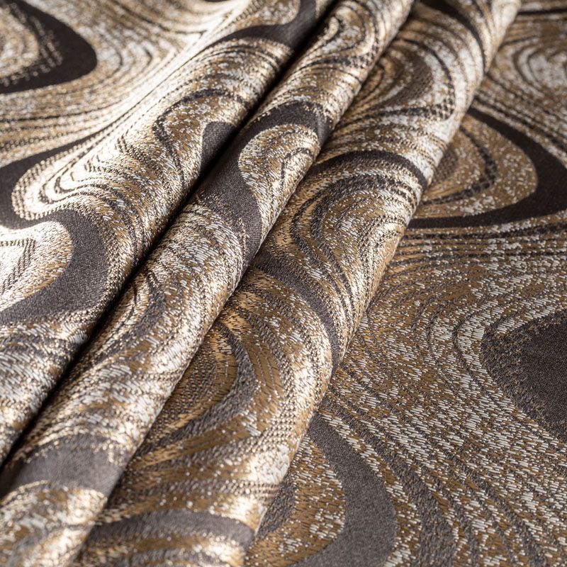 Интересная жаккардовая ткань с абстрактным рисунком в виде горизонтальных "волн" прекрасно подойдет для стильного современного интерьера. Ткань средней плотности, мягкая, хорошо драпируетсяи держит форму. Подойдет в качестве штор для гостиной, спальни, также можно использовать для пошива покрывала, декоративных чехлов, подушек, римской шторы.