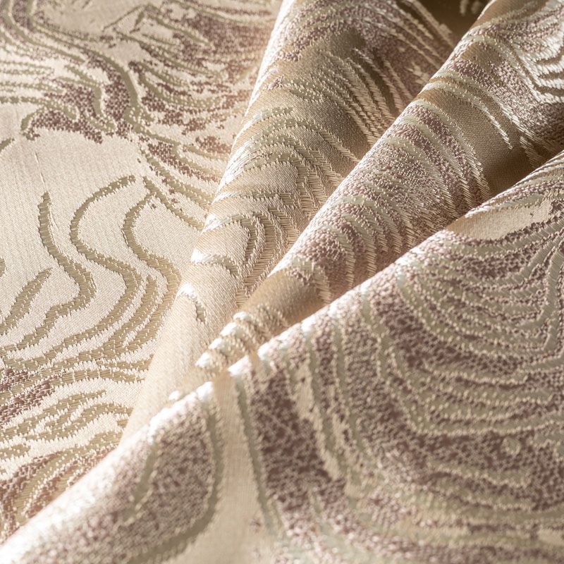 Интересная жаккардовая ткань с модным абстрактным дизайном, имитирующим срез камня, прекрасно подойдет для стильного современного интерьера. Ткань средней плотности, мягкая, хорошо драпируется и держит форму. Подойдет в качестве штор для гостиной, спальни, также можно использовать для пошива покрывала, декоративных чехлов, подушек, римской шторы.