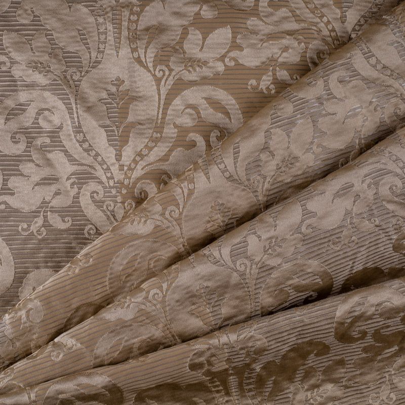 Портьерная жаккардовая ткань с классическим рисунком. Эффект старения, благородные тона и изящная блестящая полоска выглядит сдержанно и изысканно. Идеально подходит к винтажным интерьерам, классическому кабинету, шикарной гостиной в виде портьер, а также используется для декоративных элементов.
