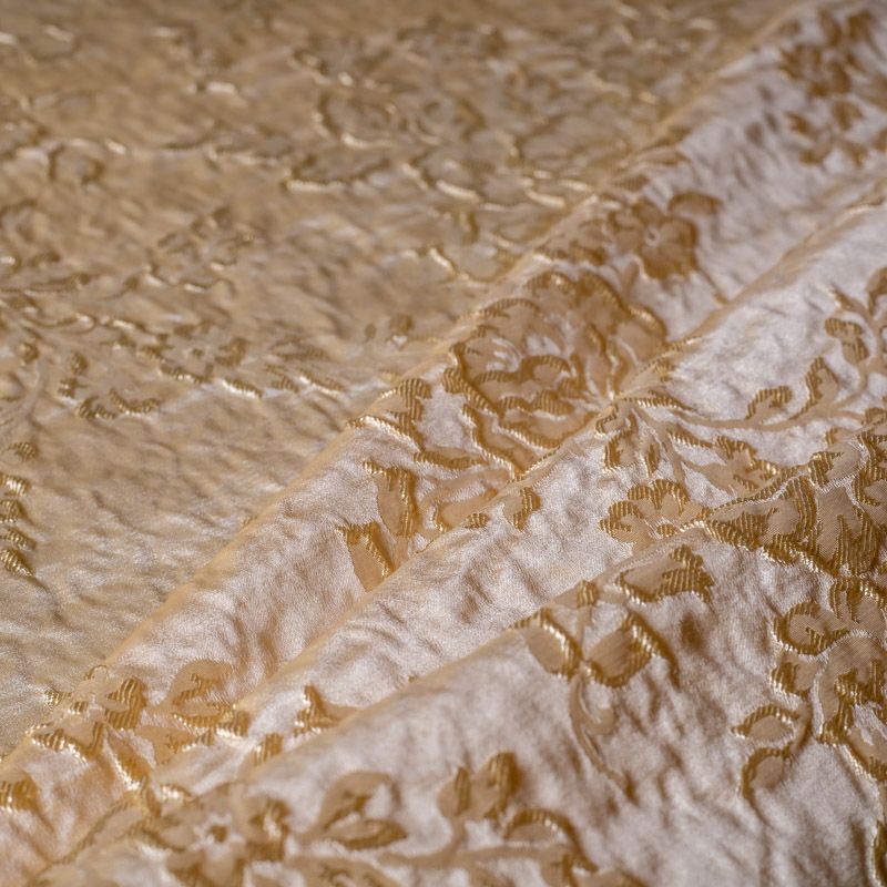 Элегантная коллекция шелковых жаккардов с цветочным рисунком выполненна в однотонном сдержанном варианте. Но различные ткацкие переплетения, использованные при создании ткани, создают объемность рисунка,  эффект роскоши придает благородный блеск полотна. Элементы мебели или декора, шторы и ламбрекены, выполненные с использованием этой ткани, создадут атмосферу наполняющую душу покоем и гармонией.