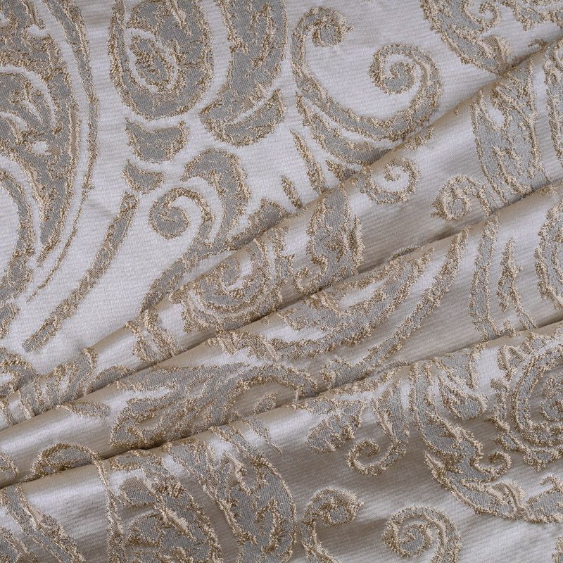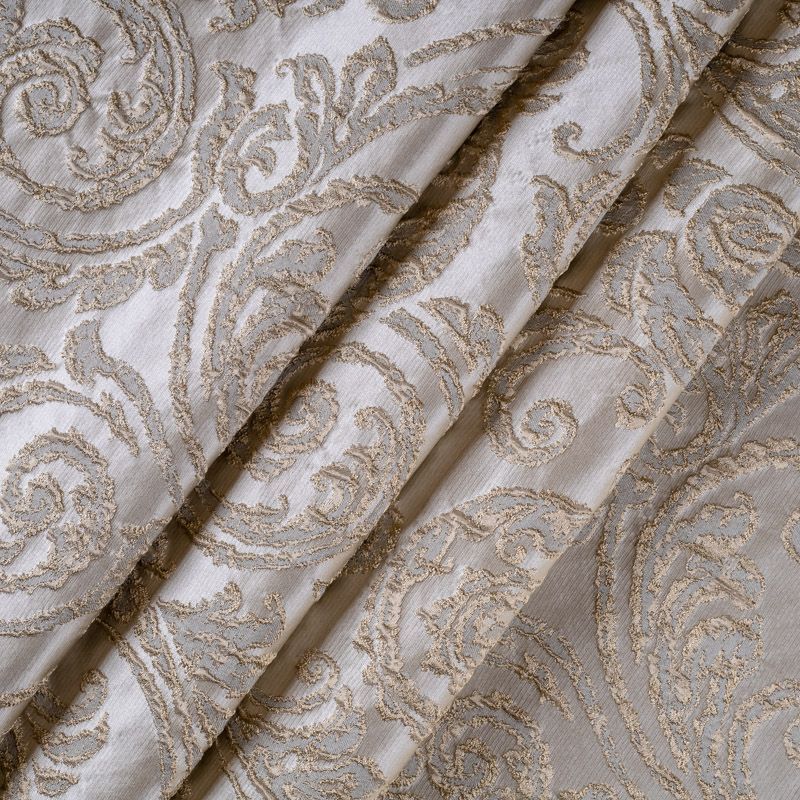 Итальянский жаккард представлен в классических золотисто-молочных оттенках и украшен изящными объемными узорами, традиционными для викторианской эпохи. Ткань роскошно смотрится на массивных гардинах, гармонично вписывается в классические интерьеры. Жаккард высочайшего качества прослужит не один год, придавая интерьеру эксклюзивности.