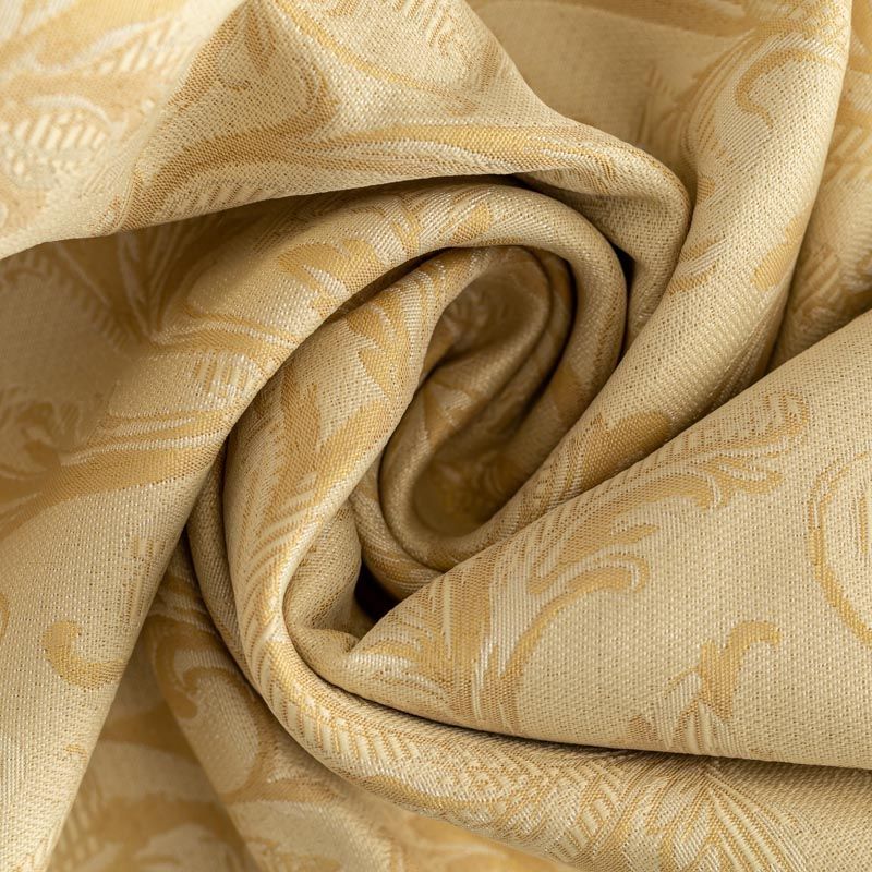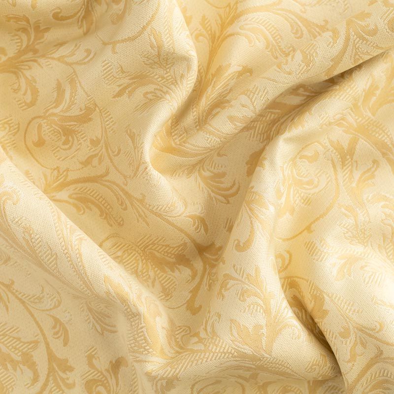 Жаккардовый рисунок идеален для оформления интерьера в классическом стиле. Ткань применима для изготовления столового белья, пошива штор, декоративных чехлов, подушек, скатертей и салфеток. Плотная жаккардовая ткань с богатым растительным узором натурального песочного и молочного цвета.