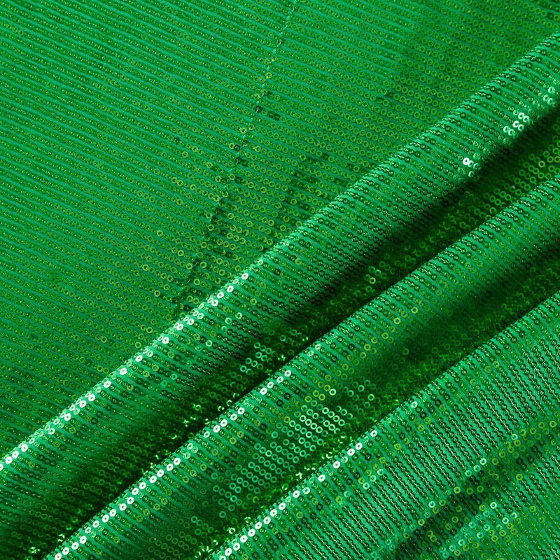 Блестящие пайетки сочного зеленого оттенка. Мелкие, размером около 3 мм. Основа - трикотажное полотно, комфортное в носке. Ткань не прозрачная, тянется.  Подойдет для вечернего коктельного платья или юбки, комбинезона, топа, танцевальных и сценических костюмов.