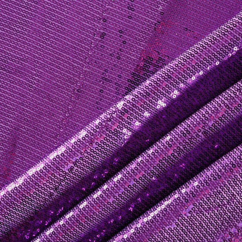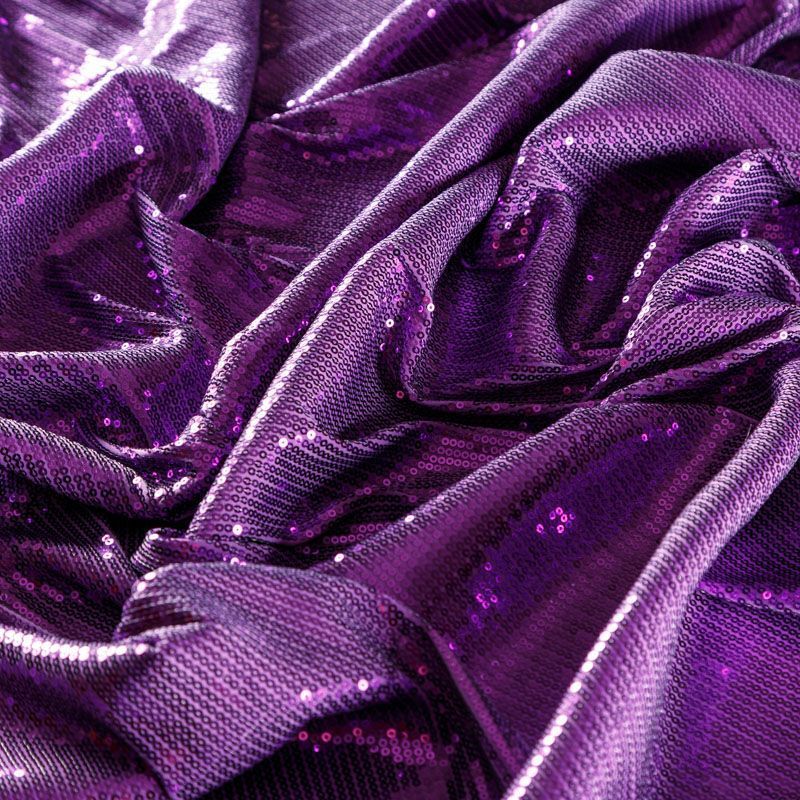 Блестящие пайетки насыщенного сиреневого оттенка. Мелкие, размером около 3 мм. Основа - трикотажное полотно, комфортное в носке. Ткань не прозрачная, тянется.  Подойдет для вечернего коктельного платья или юбки, комбинезона, топа, танцевальных и сценических костюмов.