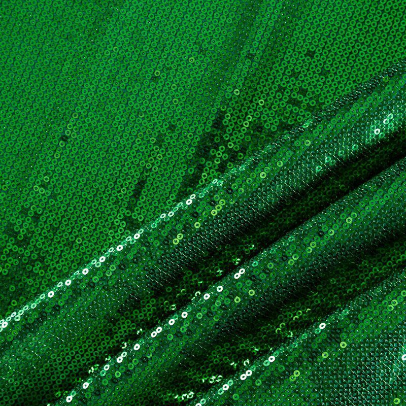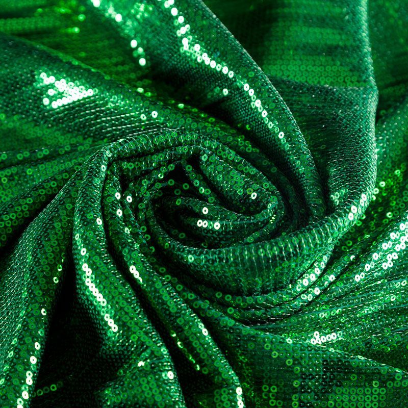 Блестящие пайетки сочного зеленого оттенка. Мелкие, размером около 3 мм. Основа - трикотажное полотно, комфортное в носке. Ткань не прозрачная, тянется. Подойдет для вечернего коктельного платья или юбки, комбинезона, топа, танцевальных и сценических костюмов.