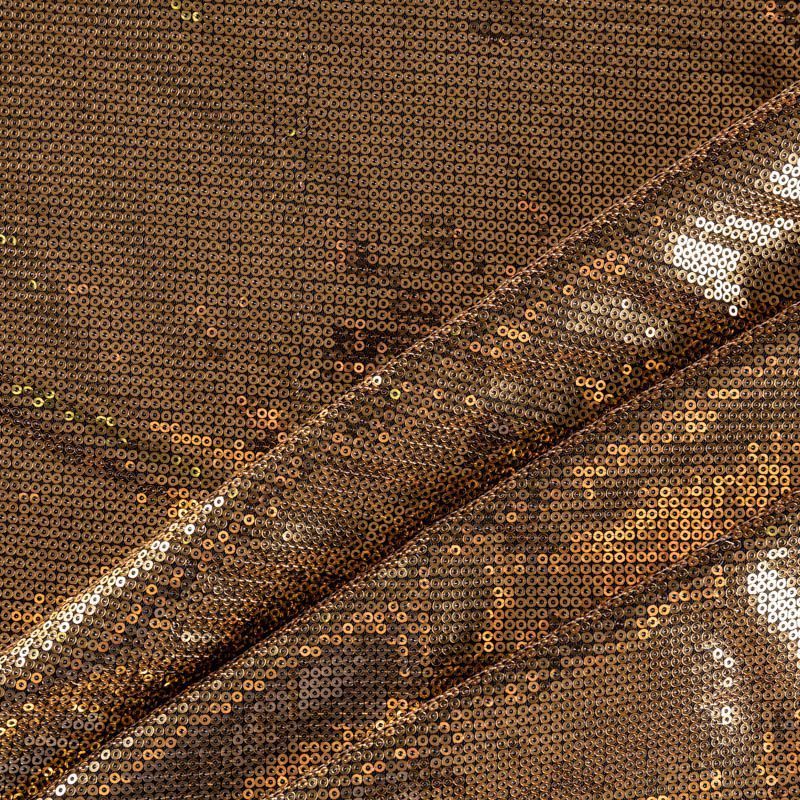 Блестящие пайетки золотого оттенка. Мелкие, размером около 3 мм. Основа - черное трикотажное полотно, комфортное в носке. Ткань не прозрачная, тянется. Подойдет для вечернего коктельного платья или юбки, комбинезона, топа, танцевальных и сценических костюмов.