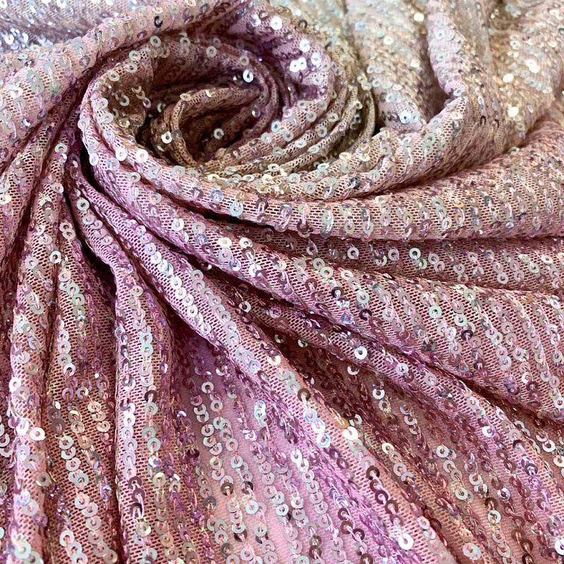 Невероятные пайетки на тонкой сетке с роскошным мерцанием мелких блесток с переходом цвета. Ткань очень хорошо драпируется, красиво переливается, имеет глянцевый блеск, пластичная и эластичная и в длину, и в ширину. Градиент расположен в направлении от кромки к кромке. Набирается объемом. Это может быть нарядное платье, Пайетки — идеальный материал для праздников и вечеринок. Из них получится эффектное платье, жакет, боди, туника, юбка или комбинезон.