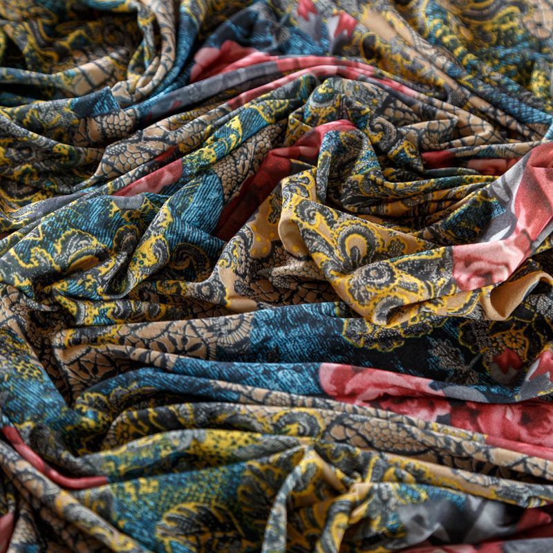 "Холодный" трикотаж средней плотности, хорошо тянется за счет эластана в составе. Ткань не сухая, мягкая, не просвечивает, хорошо драпируется. Отлично подойдет для пошива платья, туники, лонгслива, топа, юбки.