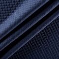 Плотное трикотажное полотно с имитацией стежки. Поверхность ткани объемная, мягкая, приятная на ощупь. Трикотаж не просвечивается, хорошо тянется за счет эластана в составе, держит форму. Прекрасно подойдет для пошива легких пальто, курток, бомберов, кардиганов, платьев, юбок, шорт.