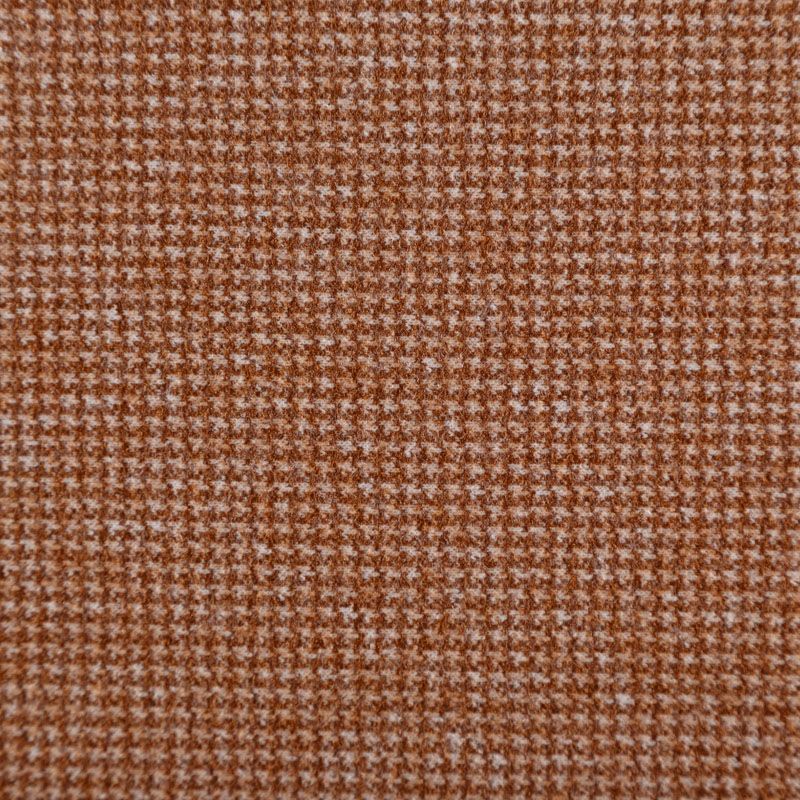 Трикотаж средней толщины, хорошо тянется за счет эластана в составе. Мелкий ненавязчивый узор "гусиная лапка" образуется переплетением бежевых и молочных нитей. Ткань не сухая, мягкая, но плотная, не просвечивает, теплая, уютная, хорошо драпируется. Отлично подойдет для пошива легкой верхней одежды, жакетов, костюмов, юбок.