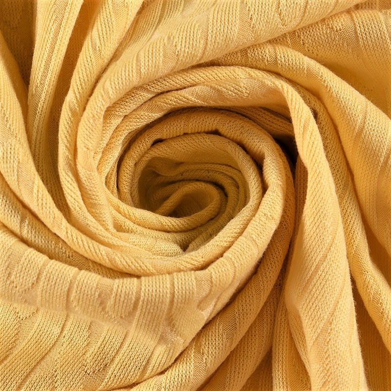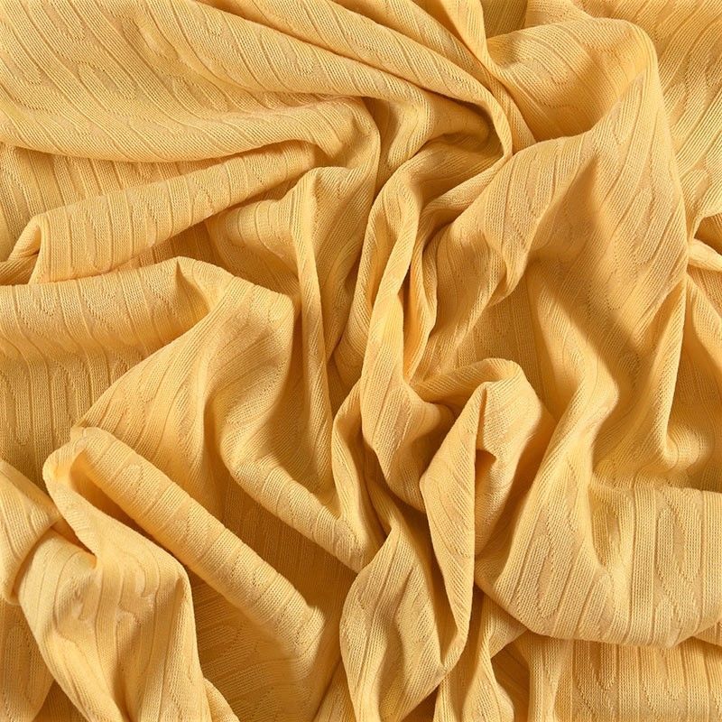 Текстурное вязаное, мягкое, пластичное полотно средней плотности. Вязаный узор - стилизованая косичка, расположен по всему полотну. Подойдет для пошива боди, топа, лонгслива, кардигана, юбки, платья, водолазок, снудов.