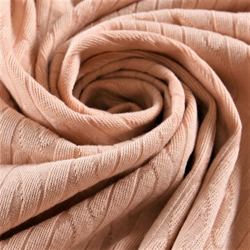 Текстурное вязаное, мягкое, пластичное полотно средней плотности. Вязаный узор - стилизованая косичка, расположен по всему полотну. Подойдет для пошива боди, топа, лонгслива, кардигана, юбки, платья, водолазок, снудов.