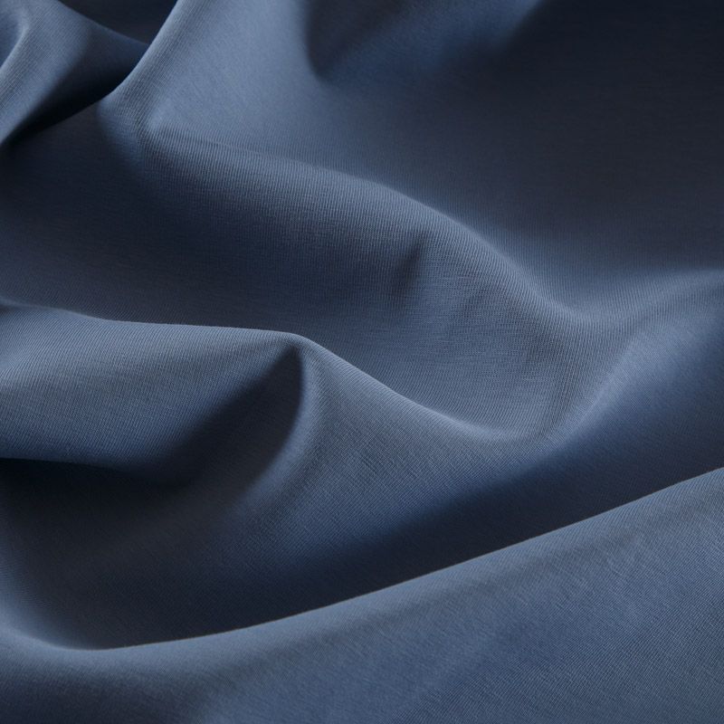 Трикотажное полотно средней плотности с хорошим смесовым составом. Материал очень мягкий, пластичный, тянется за счет эластана в составе. Поверхность гладкая, матовая, не просвечивает. Отлично подойдет для пошива изделий свободных и прилегающих силуэтов: платьев, лонгсливов, футболок, спортивной одежды. Трикотаж почти не мнется, очень прочный на разрыв.