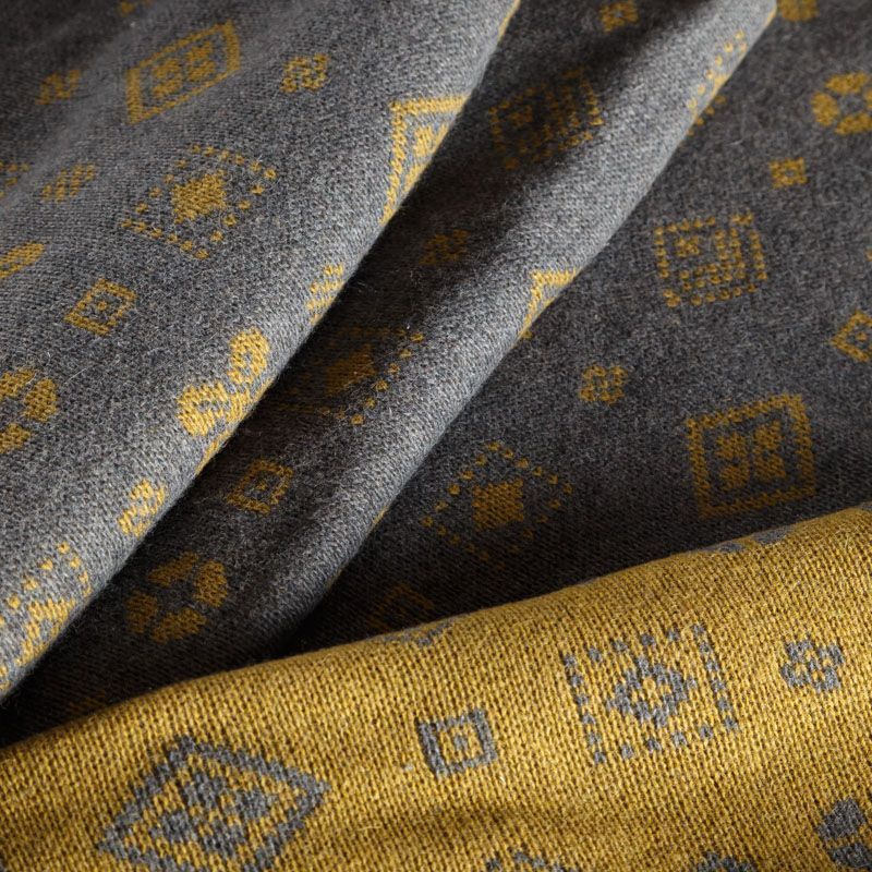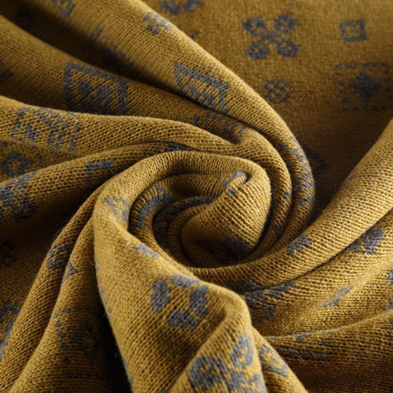 Итальянский теплый мягкий вязаный шерстяной трикотаж, два слоя которого соединены между собой жаккардовым геометрическим узором. Полотно очень пластичное, приятное на ощупь, не колется. При соответствующей обработке швов одежду из этого трикотажа можно носить на обе стороны. Подойдет для пошива теплых уютных свитеров, кардиганов, пальто, костюмов, теплого платья, свитшота, джемпера.