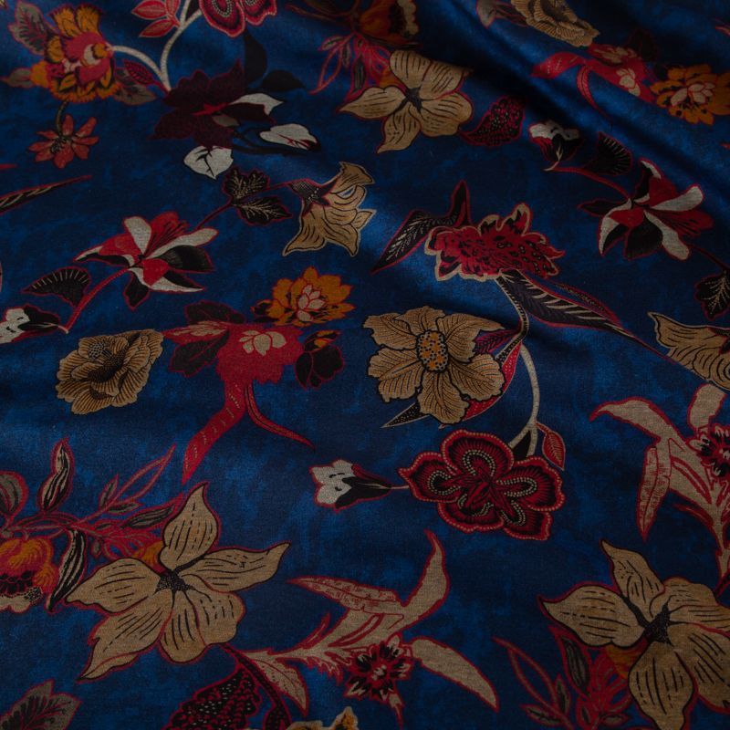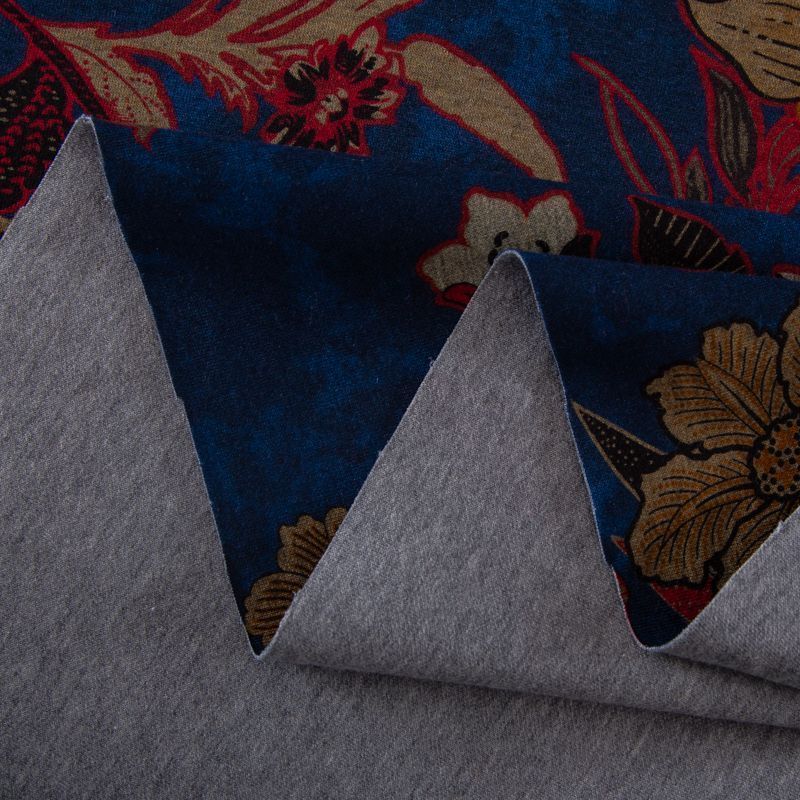 Трикотаж двухсторонний 056-19654 темно-синий принтованный в Норильске