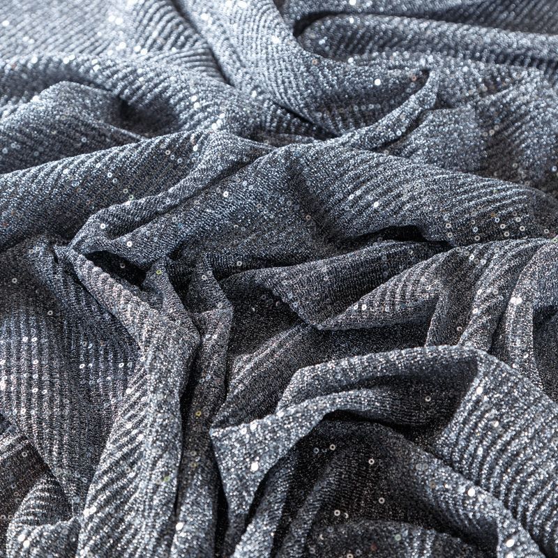 Трикотаж-гофре с пайетками 056-09122 серебристо-серый однотонный