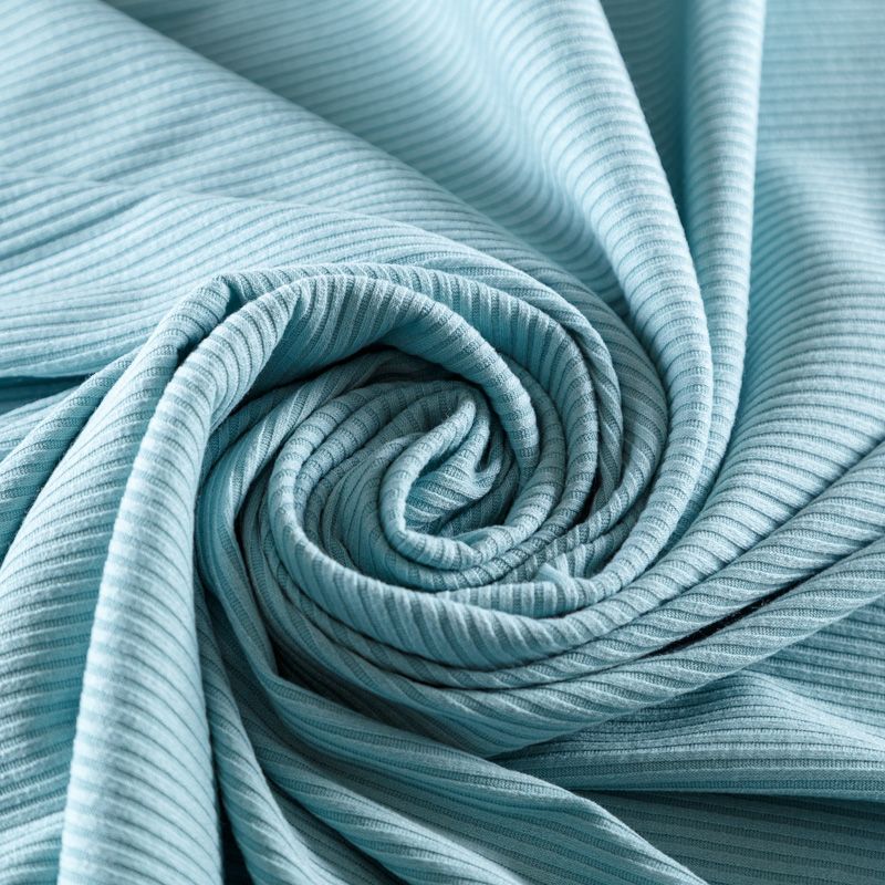 Трикотаж-лапша средней плотности, с высокой степенью эластичности, поверхность рельефная за счет эффекта резинки. С изнанки трикотаж гладкий, комфортный, подходит для использования без подклада. Сшить из такого полотна можно топы, лонгсливы, водолазки, платья,  юбки, брючные комплекты. Направление полос - вдоль линии кромки.
