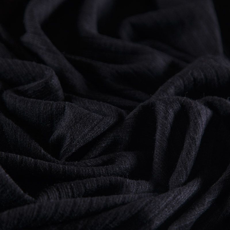 Поверхность фактурная, мягкая и приятная на ошупь. Трикотаж хорошей плотности, не просвечивает, хорошо драпируется, умеренно держит форму. Подойдет для пошива водолазки, лонгслива, кардигана, свитера, широких брюк.