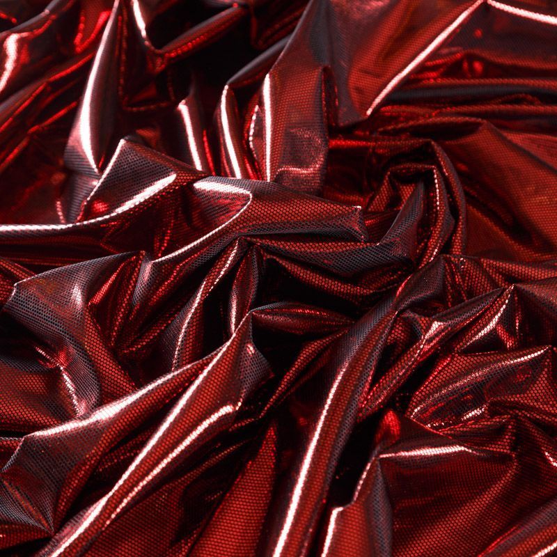 Эффектное трикотажное полотно с насыщенным глянцевым блеском. Материал очень пластичный, образует струящиеся мягкие складки, отлично тянется, не просвечивает, не мнется. Изнаночная сторона матовая, приятная на ощупь. Идеальный выбор для нарядных моделей, гимнастических и танцевальных костюмов.