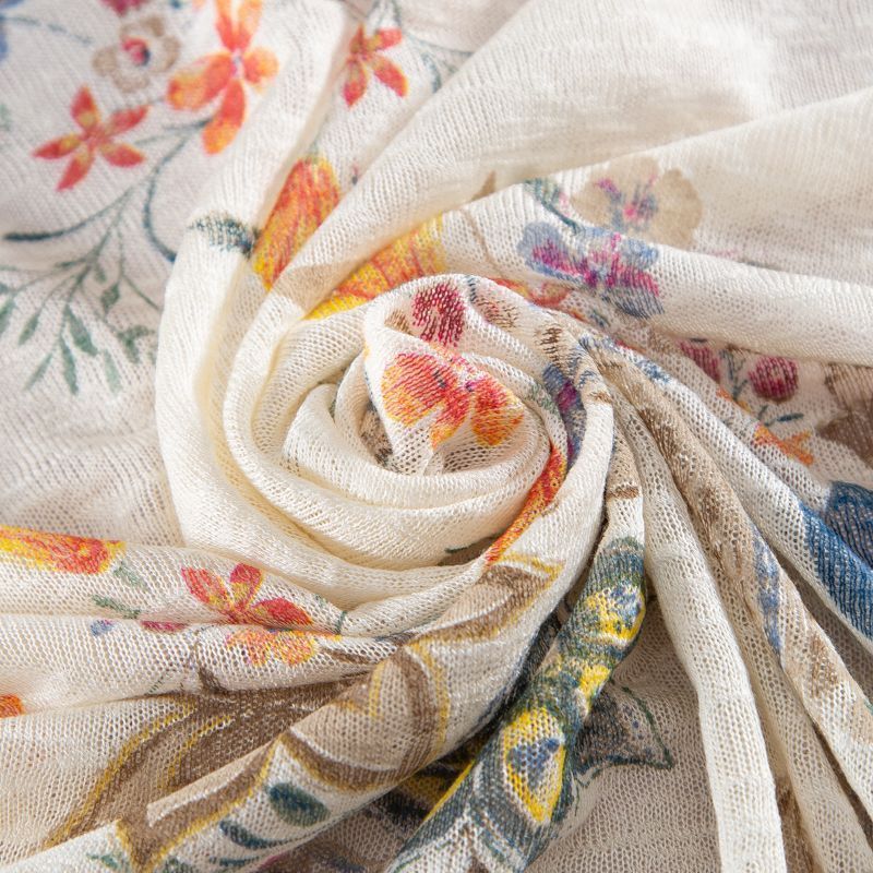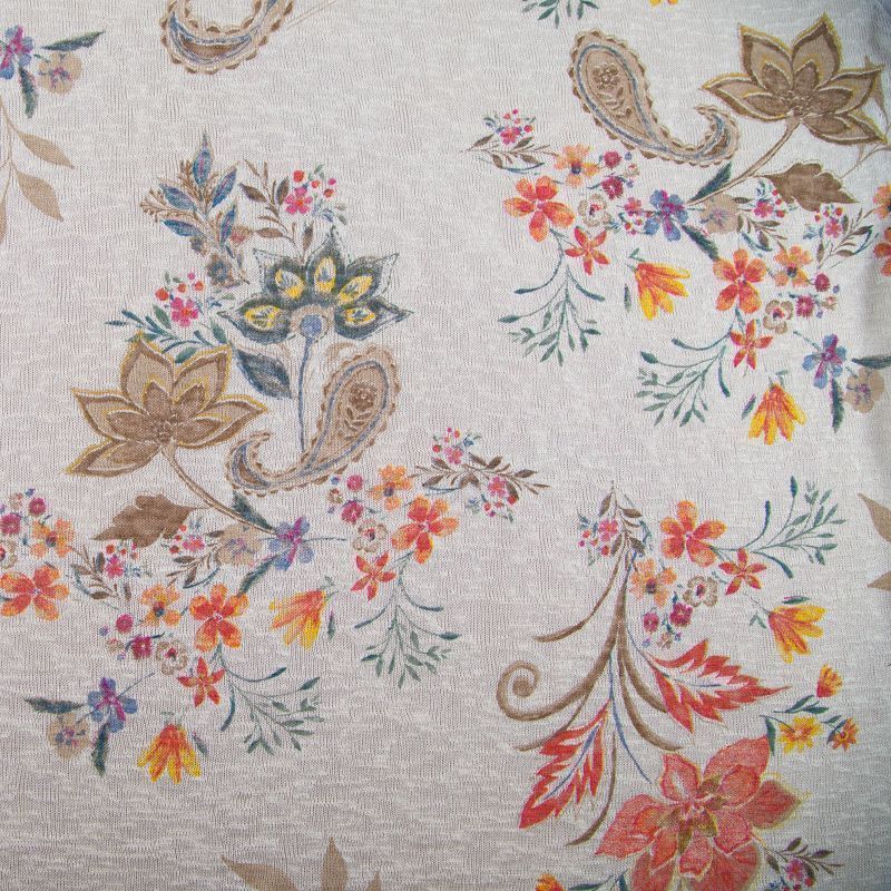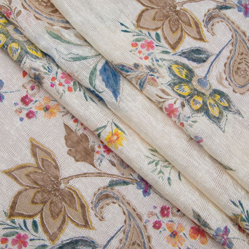 Трикотаж льняной 056-20088 экрю принтованный в Норильске