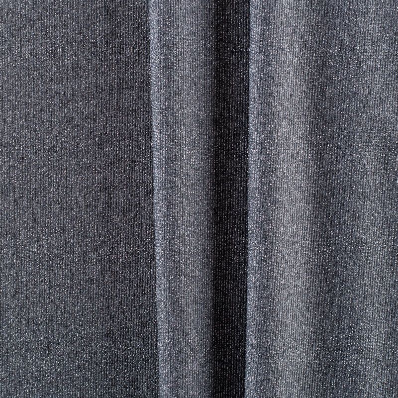 Итальянский вискозный трикотаж серого оттенка с добавлением серебристой люрексной нити. Поверхность шероховатая на ощупь, ткань очень плотная за счет плетения, пластичная, хорошо тянется, не просвечивает. Прекрасно подойдет для пошива лонгслива, гольфа, футболки, кардигана, платья или юбки в спортивном стиле.