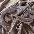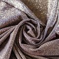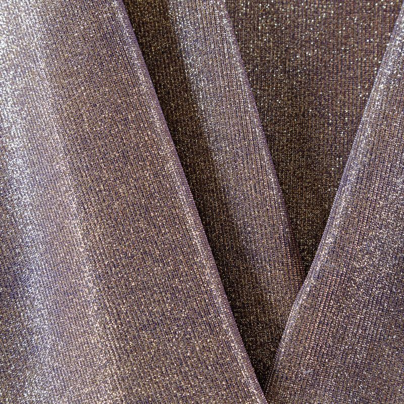 Трикотажное полотно средней плотности с добавлением золотистой люрексной нити. Поверхность шероховатая на ощупь, ткань пластичная, хорошо тянется, не просвечивает. Прекрасно подойдет для пошива лонгслива, гольфа, футболки, кардигана, жакета, платья или юбки в спортивном стиле.