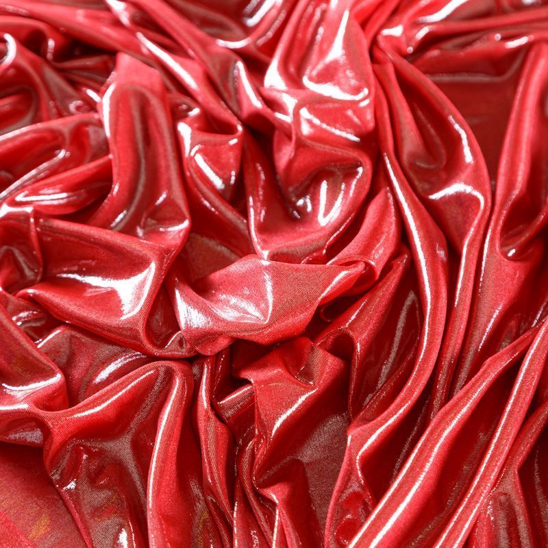 Эффектное трикотажное полотно с мерцающим напылением. Материал очень пластичный, образует струящиеся мягкие складки, отлично тянется, не просвечивает, не мнется. Изнаночная сторона матовая, приятная на ощупь. Идеальный выбор для нарядных платьев, топов, маек, гимнастических и танцевальных костюмов.