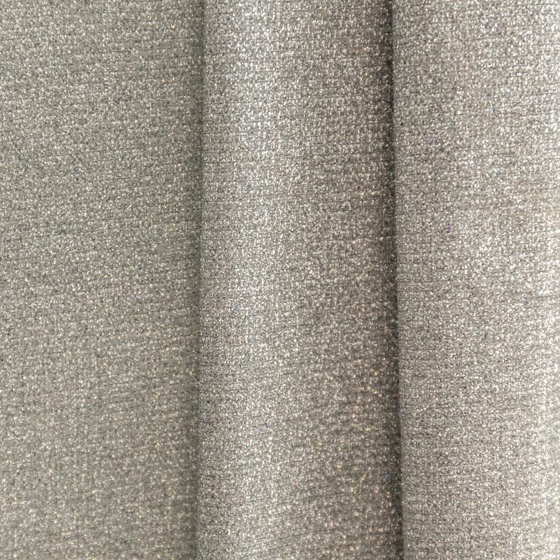Мягкое и эффектное трикотажное полотно с металлизированным напылением. Структура полотна плотная, легко растяжимая, эластичная. С лицевой стороны поверхность ткани  слегка шероховатая на ощупь, характеризуется заметным блеском «металлик». С изнанки трикотаж гладкий, комфортный, подходит для использования без подклада. Отлично пододет для пошива водолазки, платья, топа, леггинсов, спортивных купальников, нарядных изделий.