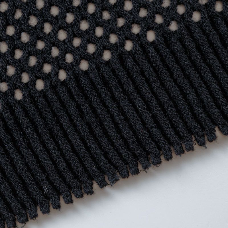 Итальянский шерстяной ажурный вязаный трикотаж черного цвета по двум кромкам оформлен резинкой, которая заменяет манжеты или подвязы в готовом изделии. Полотно очень легкое, мягкое, воздушное, не колется, прозрачное за счет плетения, может потребоваться подклад. Идеально подойдет для пошива оригинального свитшота, свитера, платья на подкладе, кардигана, топа.