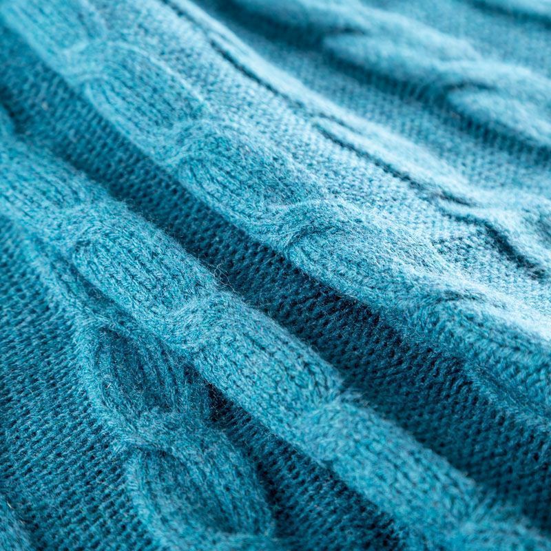Итальянский шерстяной трикотаж насыщенного сине-зеленого оттенка с крупными ажурными вязаными "косами". Полотно плотное, мягкое, эластичное, не просвечивает. Прекрасно подойдет для пошива теплых, объемных уютных свитеров, кардиганов, жилета, платьев, шарфов, палантинов, пончо или снудов.