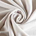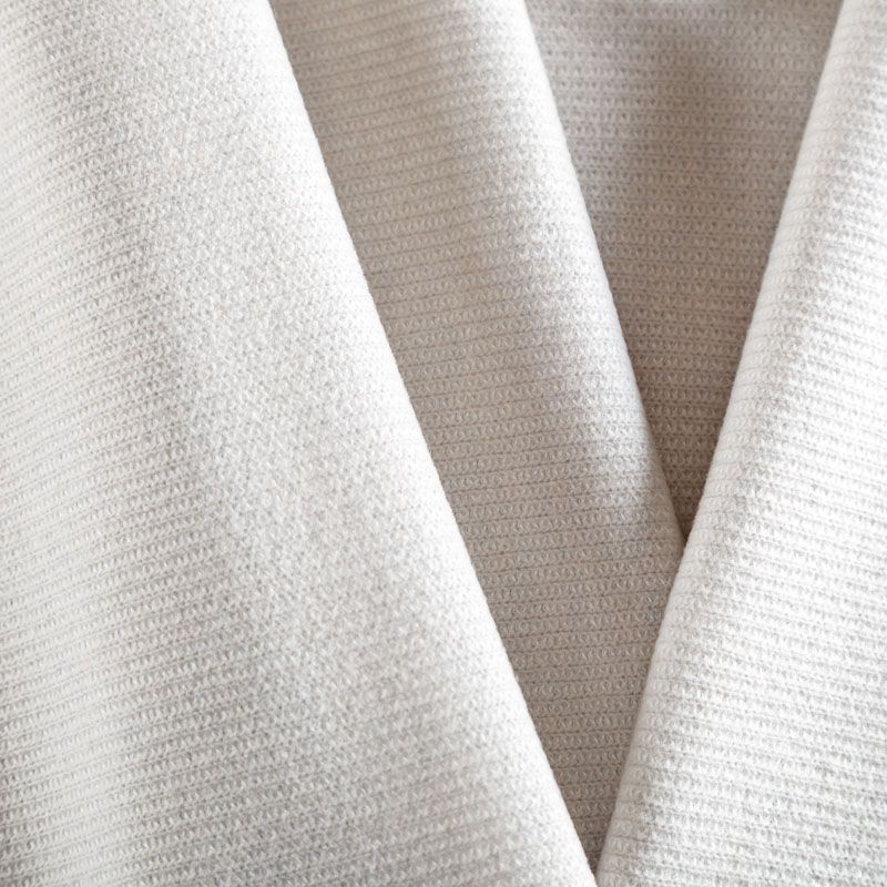 Итальянский полушерстяной трикотаж, вызязанный тонкой "лапшой". Поверхность фактурная, мягкая и приятная на ошупь. Трикотаж средней плотности, не просвечивает, хорошо драпируется, умеренно держит форму. Подойдет для пошива водолазки, лонгслива, кардигана, свитера, широких брюк.