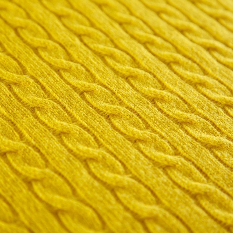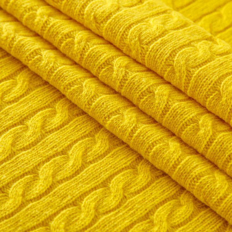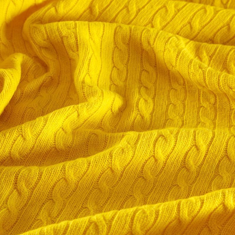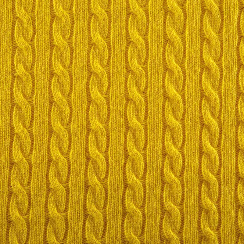 Итальянский вязаный шерстяной трикотаж с косами в насыщенном желтом оттенке. Трикотаж мягкий, матовый, пластичный. Отлично подойдет для пошива платья, кардигана, свитера.