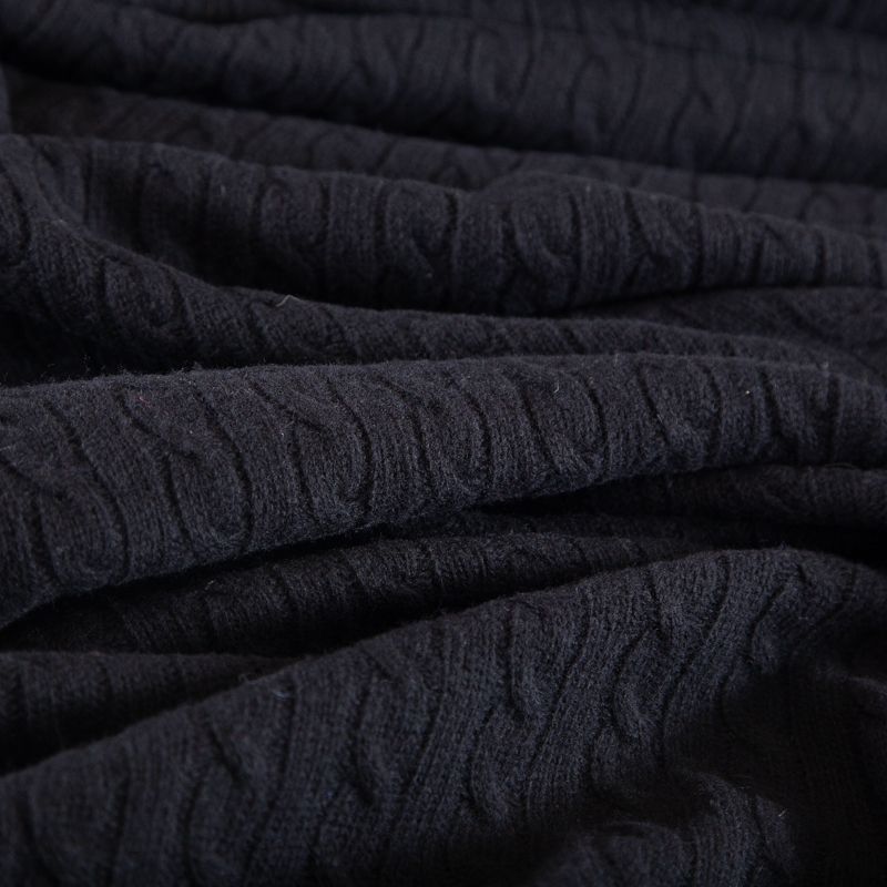 Итальянский вязаный шерстяной трикотаж с косами в черном оттенке. Трикотаж мягкий, матовый, пластичный. Отлично подойдет для пошива платья, кардигана, свитера.